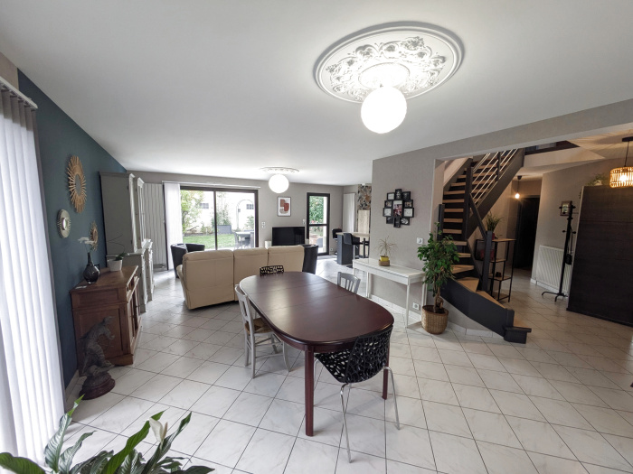 Située dans un environnement paisible, cette maison de plain-pied de 6 pièces vous offre un cadre de vie idyllique, à la campagne… mais tout près de la ville ! La maison se compose d’une...
